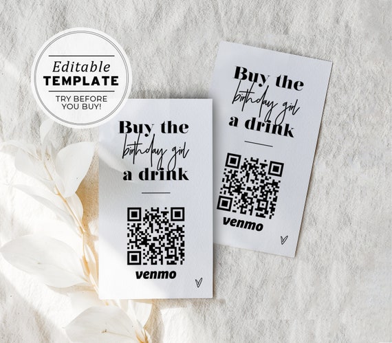 Buy The Birthday Girl A Drink Venmo Card Paypal Qr Code Etsy
